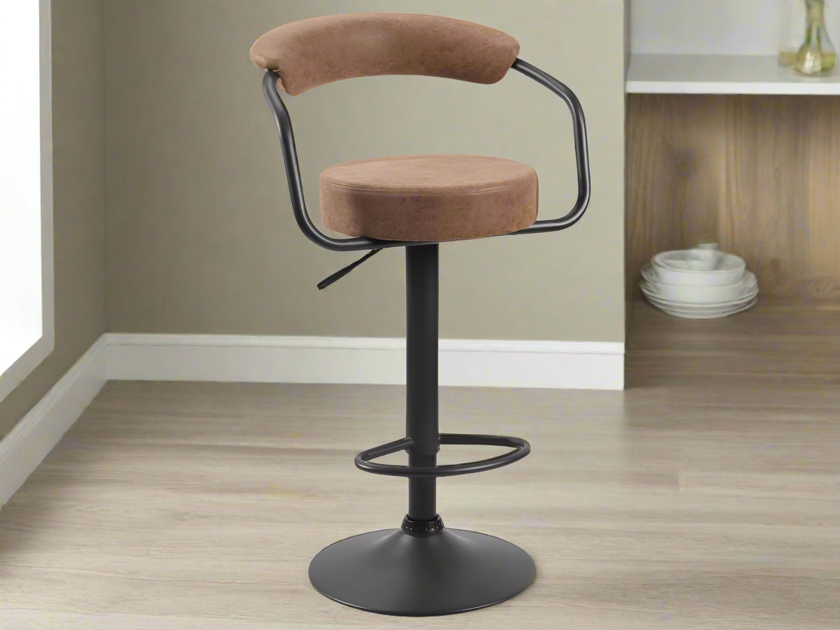 Add sophistication to your kitchen or bar with the luxurious Hanna Bar Stool - Brown. Its sleek design and opulent Brown faux fabric make it a perfect addition to any space. Experience ultimate comfort with the plush cushioned seat and conveniently store it under your counter when not in use. Available in a set of two and multiple stylish colours, elevate your space with the Hanna Bar Stool - Brown today!