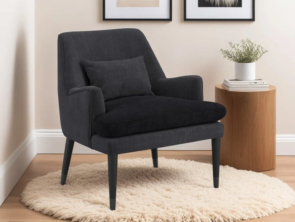Discover the perfect blend of style and comfort with our Montana accent chair, meticulously crafted in Anthracite coloured linen. The addition of a black shearling seat and bold, modern black legs elevates this chair to a whole new level of sophistication. Transform your space and indulge in unparalleled comfort with the Montana.